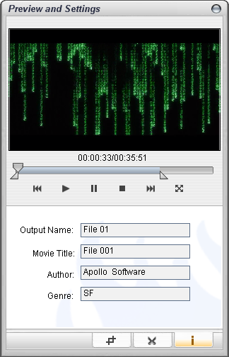 Copyright Announcement: Apollo Multimedia .Inc is a well-known and professional developer dedicating to digital video and audio software developing. our software including DVD to DVD Copy software, DVD Ripper series software involving DVD to DivX, DVD to AVI, DVD to VCD , DVD to WMV, DVD to iPod Converter, DVD to PSP Converter, DVD Audio Ripper, Video Converter including 3GP Video Converter, iPod Video Converter, PSP Video Converter, AVI MPEG Converter, and DVD Creator, AVI to DVD burner, DivX to DVD burner etc. all other software by Apollo Multimedia Corporation are copyright protected legally. |
